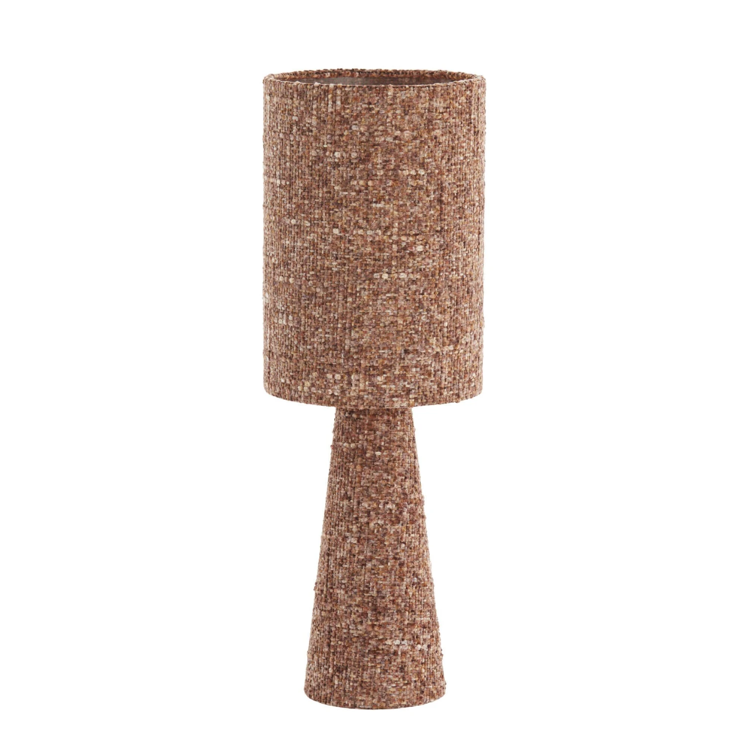 The Slater Boucle Burgundy 58cm Table Lamp combines modern design with soft texture for an effortlessly stylish look. Illuminable by a required E27 bulb, this sophisticated table lamp features a tall cylindrical shade with a coordinating conical base finished in a earthy textured burgundy boucle fabric, creating a cosy and inviting atmosphere. Blending form and function, this statement table lamp is operated by a rocker switch and is perfect for adding a touch of understated style and warmth to wide range of interiors with its striking yet minimalist appearance.