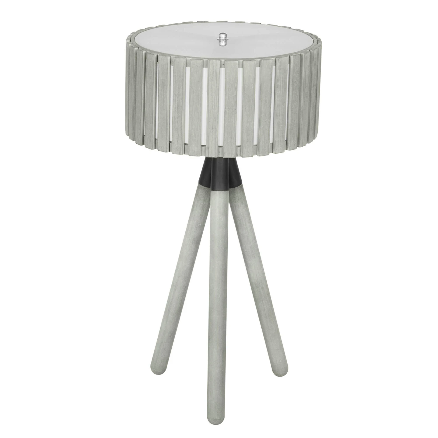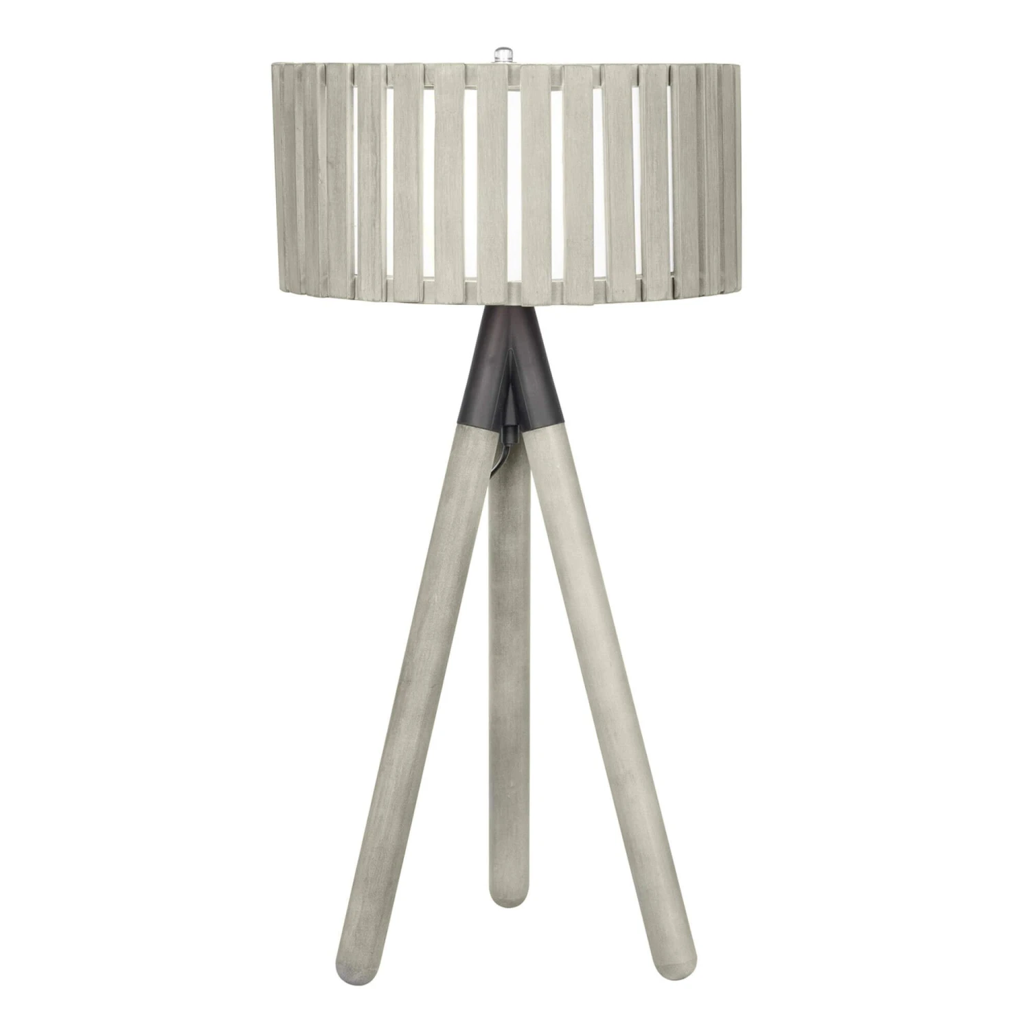Add a sophisticated and contemporary edge to your space with this Slatted Antique Wood Tripod Table Lamp. Illuminable by an E27 LED bulb, this stylish table lamp features a wooden slatted shade supported on a sleek tripod design base in a charming antique grey finish, elegantly diffusing the light to provide a warm and cosy ambience. Operated by a rocker switch, it is easy and convenient to use. Available in two colours, this stunning table lamp will effortlessly make a statement in any room and is perfect for complementing various décor styles, from contemporary to industrial, making it ideal placed on top of a sideboard or in your living room, bedroom or study.