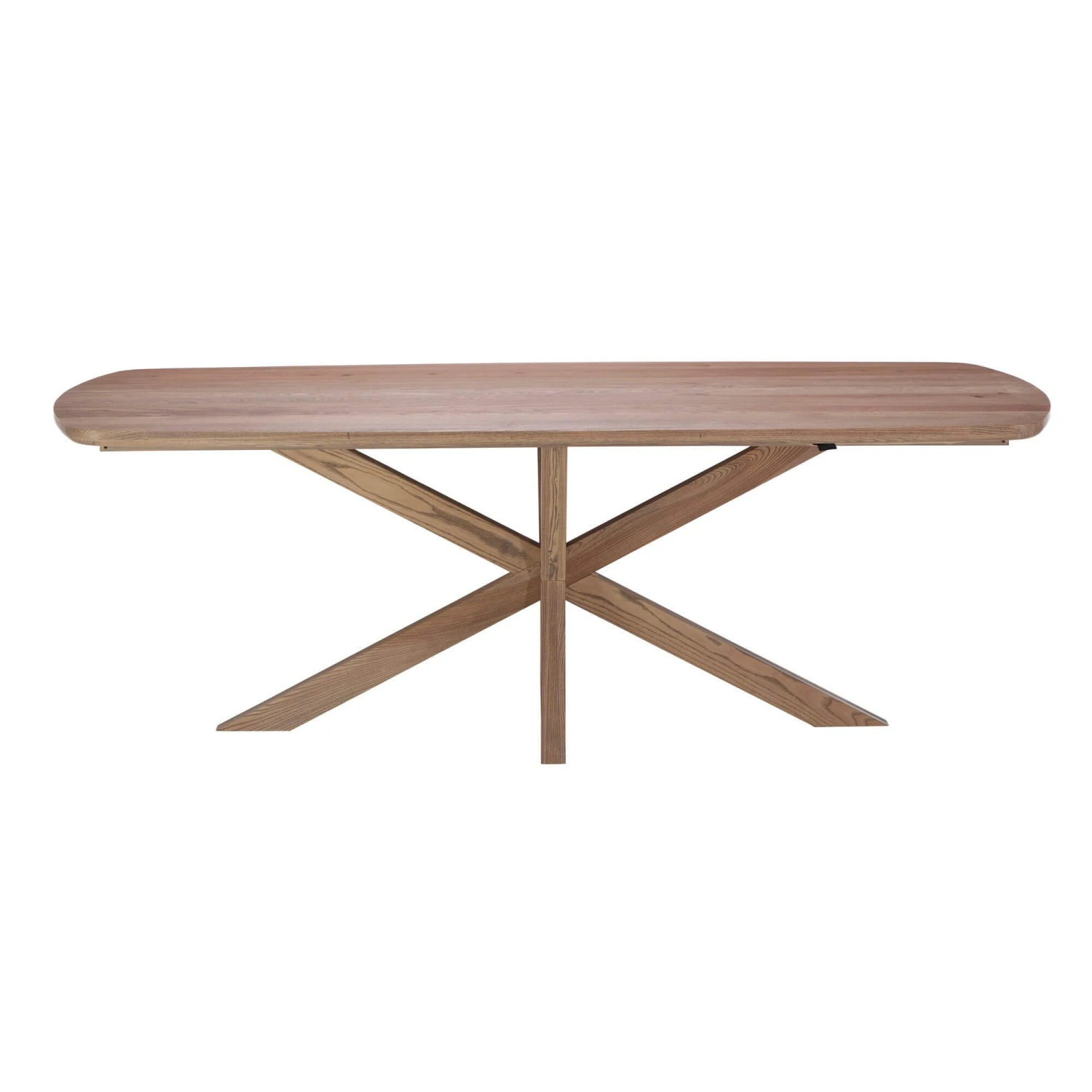 The Stephanie 220cm Solid Brushed Ash Dining Table features a stunning contemporary design that is versatile and sits wonderfully alongside most existing furniture and blends in with most room styles. This table features a solid ash construction with a brushed and oiled finish, highlighting the wood’s natural beauty. The table’s most striking feature is its intersecting starburst shaped legs, creating a captivating visual contrast with the rectangular top.