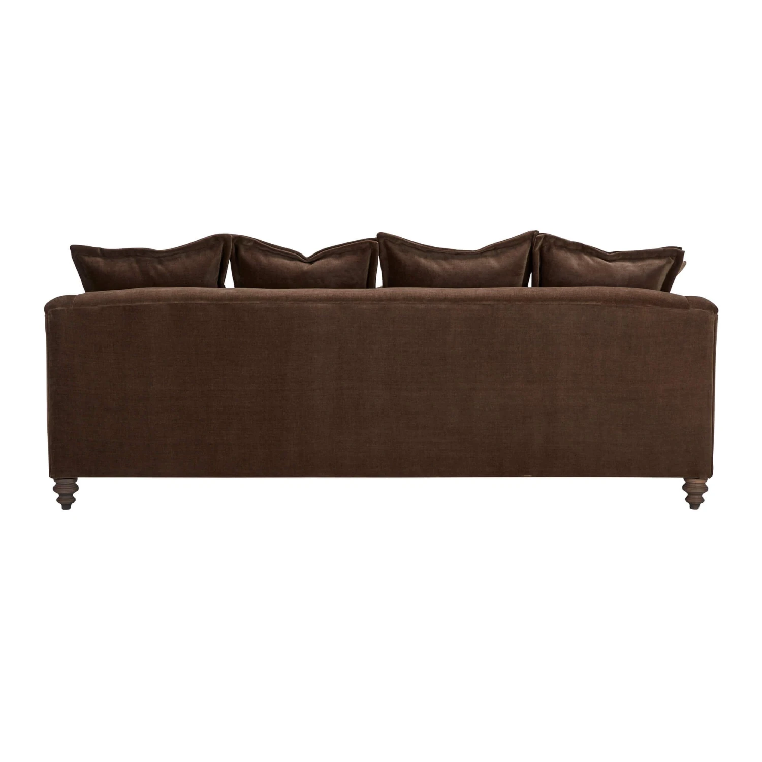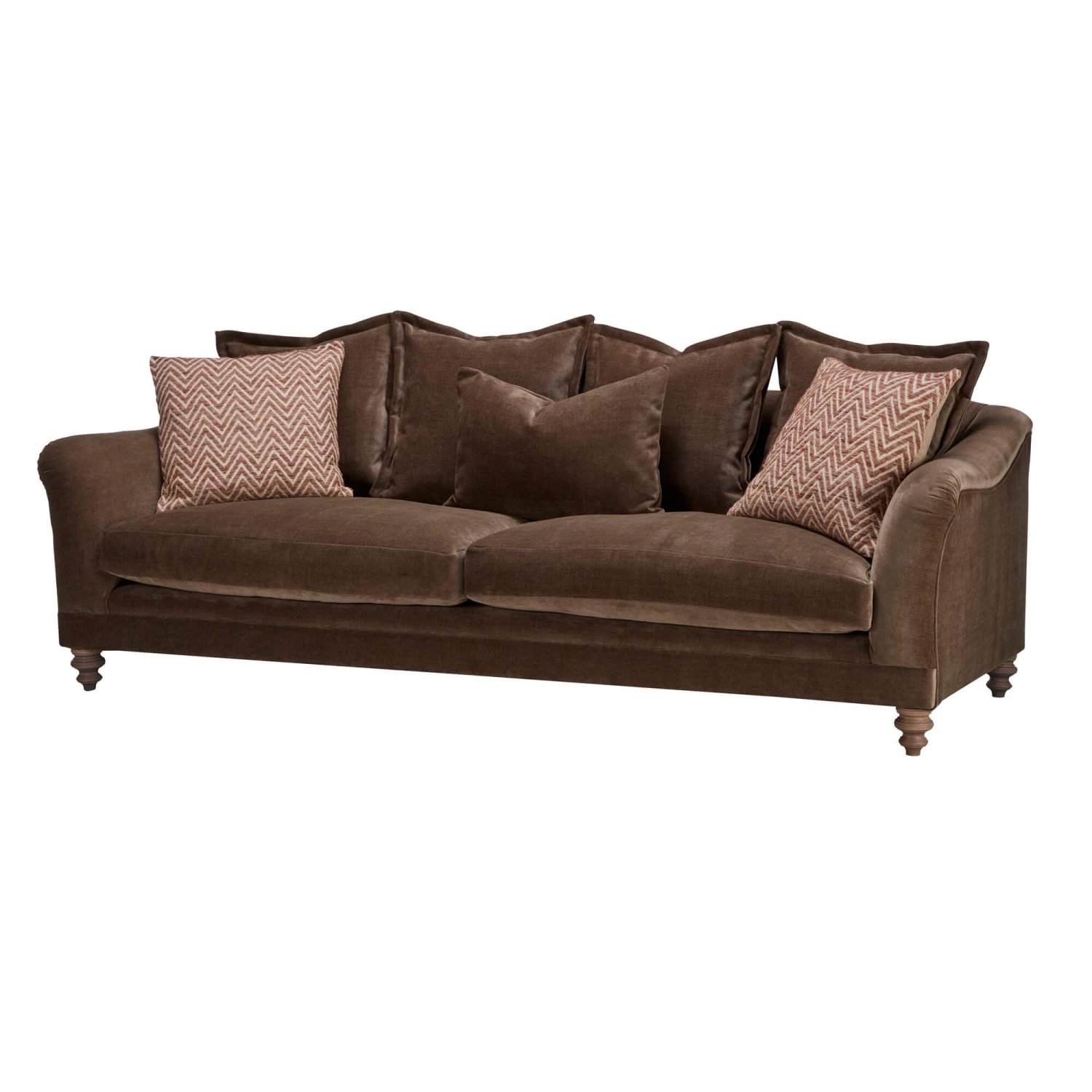 Indulge in timeless design and exceptional comfort with the Tetrad Gatsby Deep Brown Fabric 4 Seater Grand Sofa. This inviting piece features a classic silhouette, with luxurious dark brown fabric upholstery, a plush scatter back design and turned walnut wooden legs, creating a warm and sophisticated look that complements any living space.