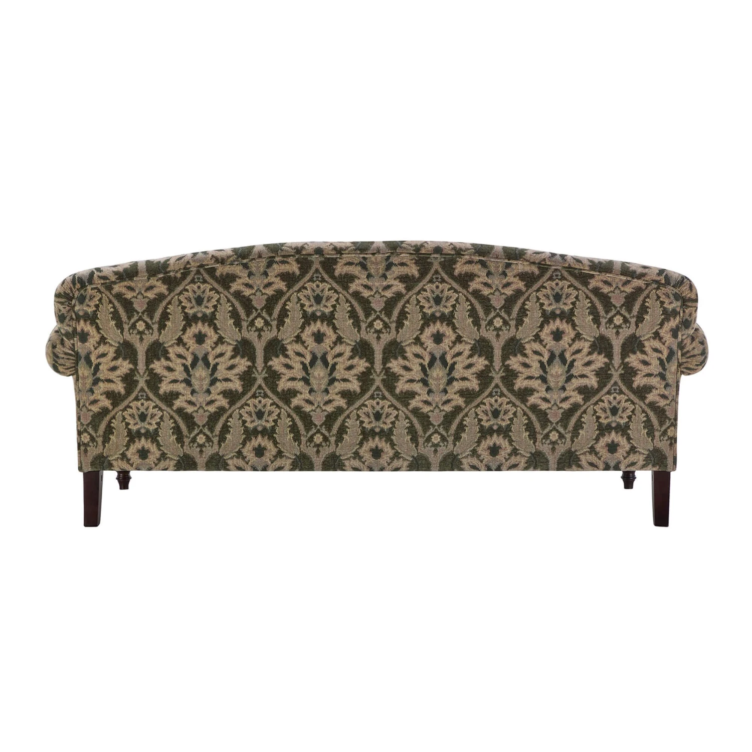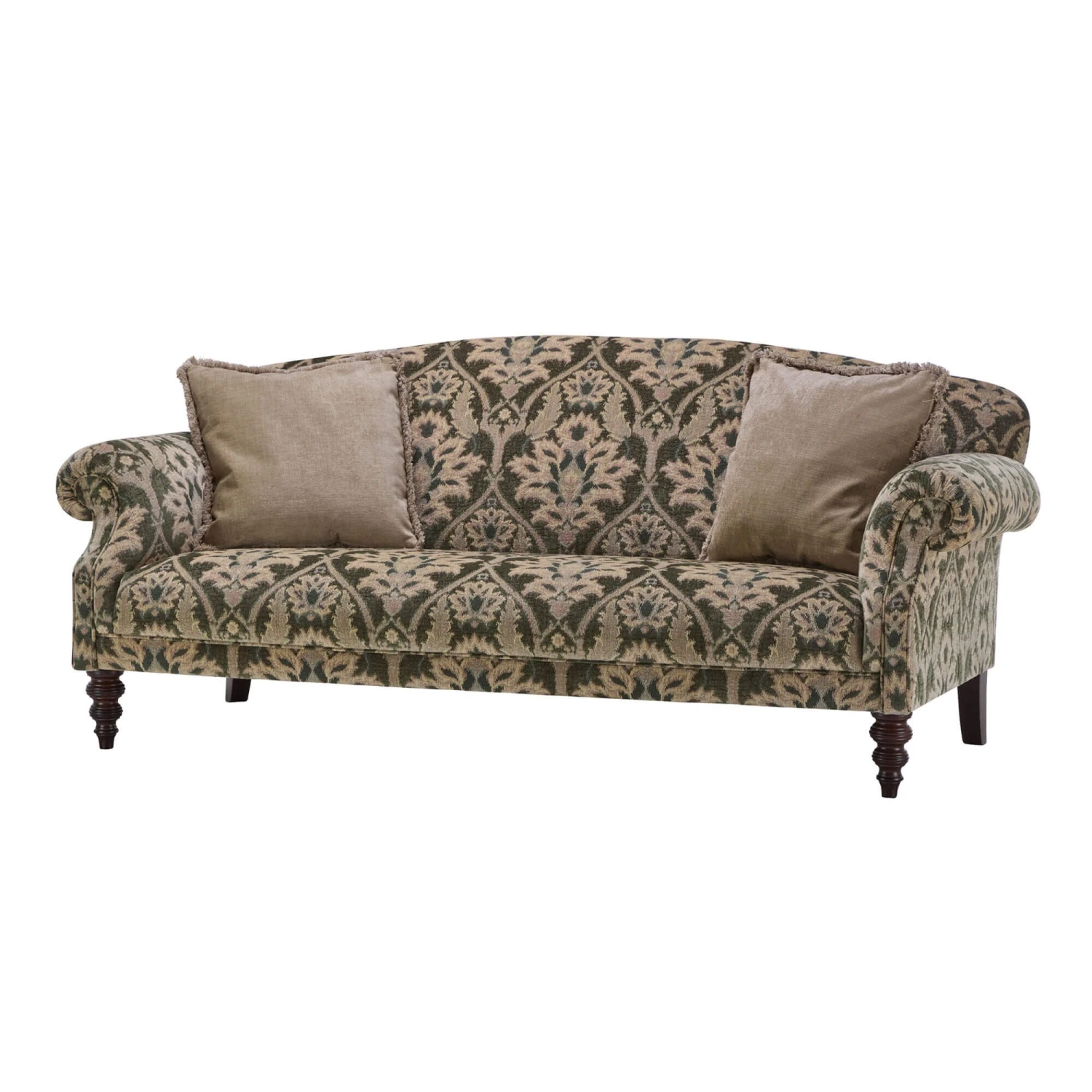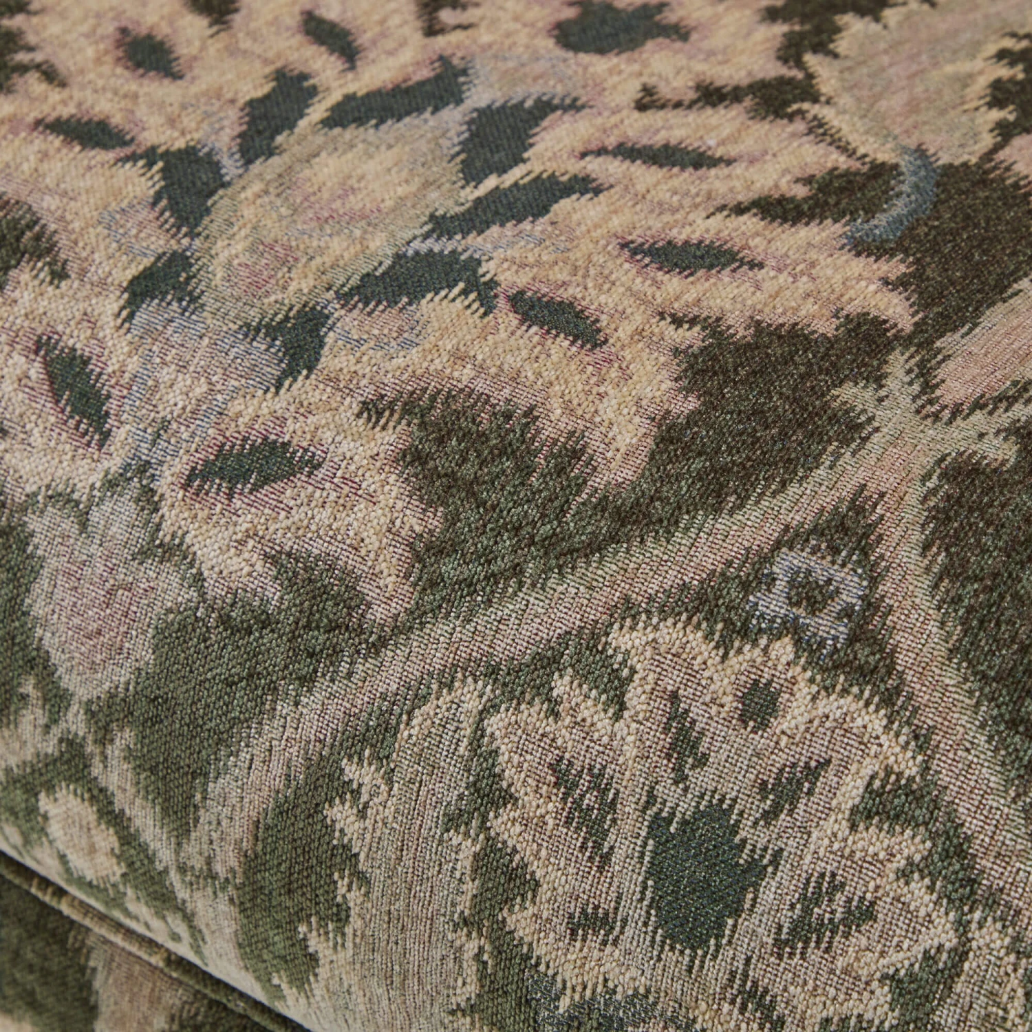 The Tetrad Tallis Enigma Sage Fabric Midi Sofa offers the perfect balance of sophistication and comfort. Upholstered in a patterned enigma sage green fabric, the Tallis features gentle scroll arms, a high back and intricate dark mahogany hardwood legs, creating a refined and timeless piece.