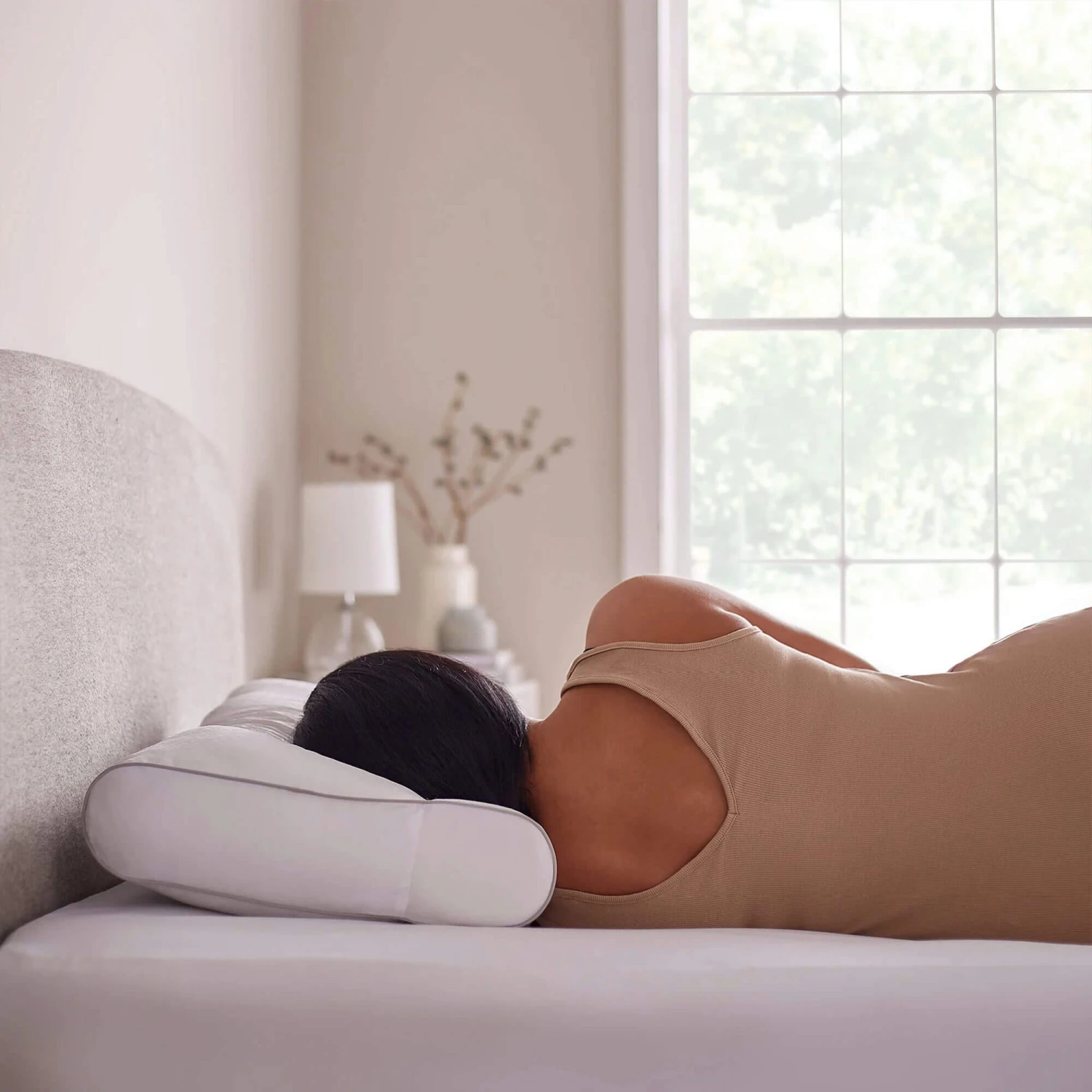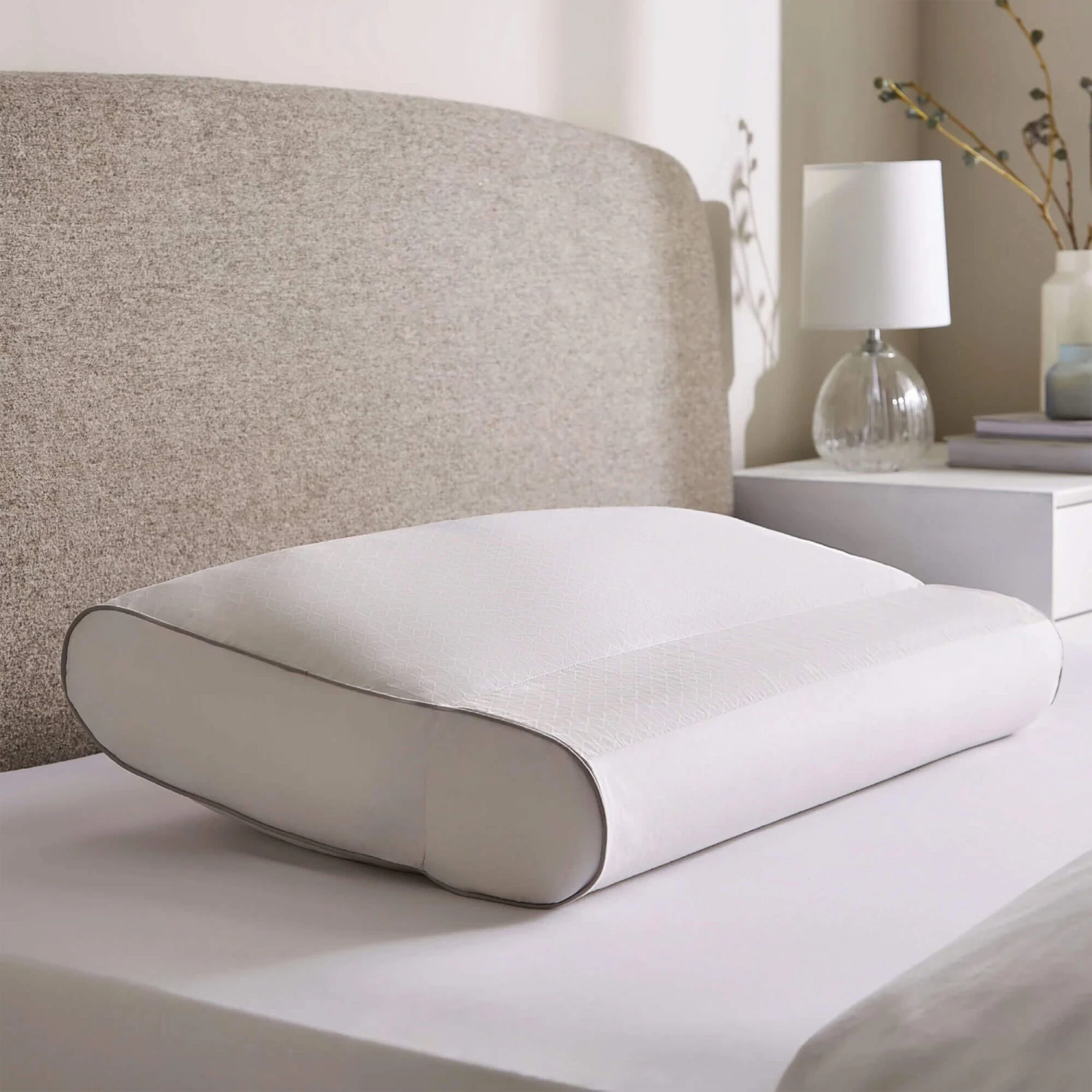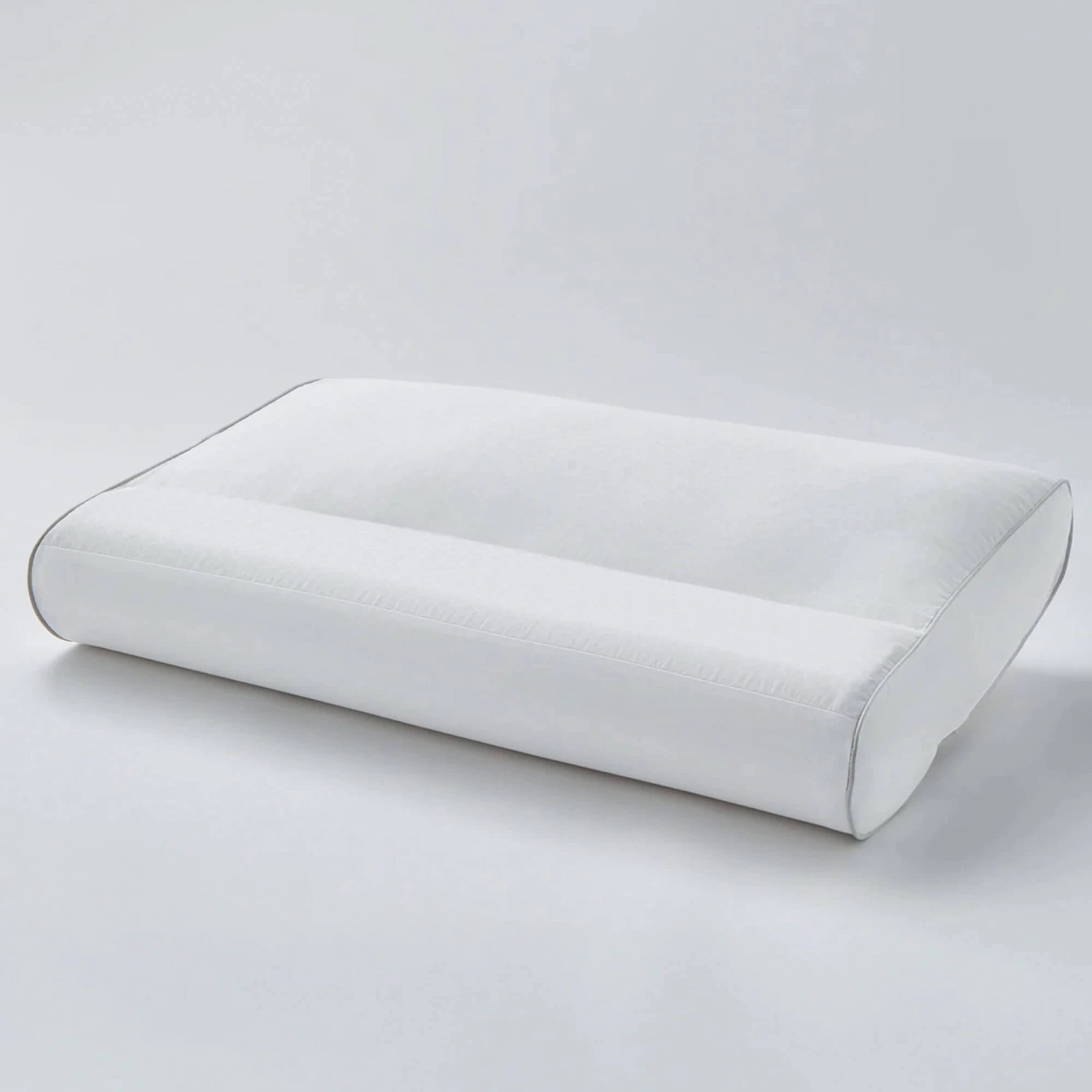 The cooling Head And Neck Support Pillow by The Fine Bedding Company is a uniquely designed hybrid pillow that marries the luxurious softness of fibre fill with the tailored support of memory foam. It features a memory foam tube at the front that moulds to your body for the optimal level of neck support, and a fibre fill section at the back to cushion your head. These two chambers help back and side sleepers maintain optimal spinal alignment throughout the night which can reduce stiffness, aches, and pains the next day.