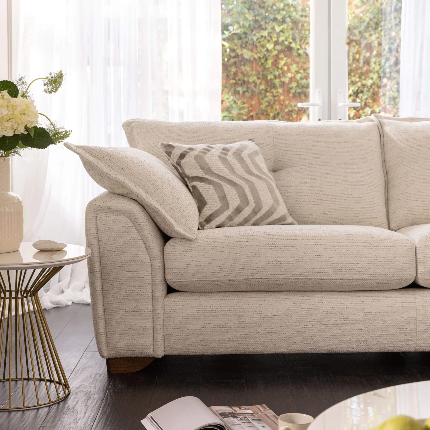 Fully reversible, premium foam seat cushions with a fibre wrap bestow a sumptuous sit, whilst hollow pocketed fibre back cushions, supported by elasticated tensioned webbing, offer support without compromising on comfort. Removable arm cushions and feather-filled, decorative scatter cushions further enhance the alluring appeal of the Tianna sofa, whilst creating a more relaxed and informal style.