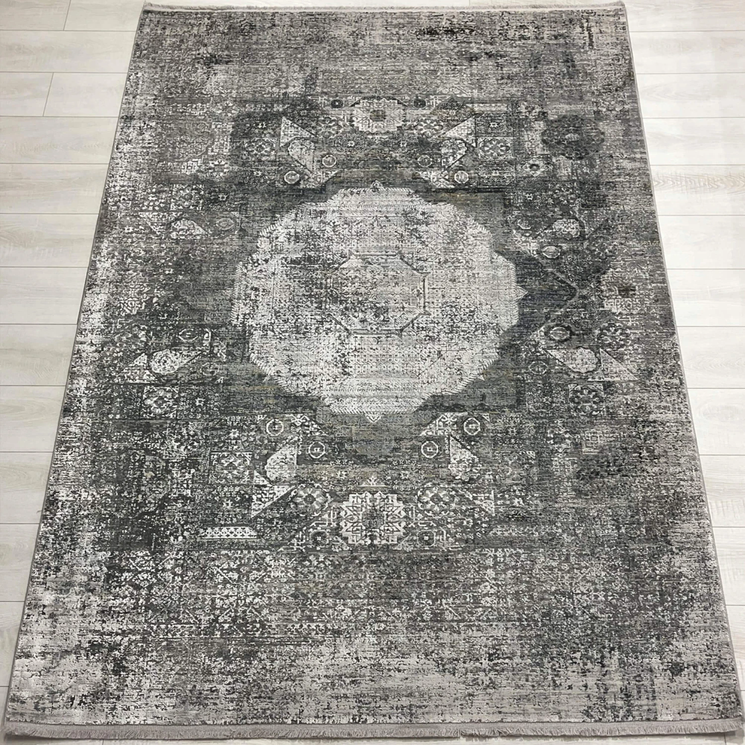 This captivating rug features a central floral medallion that seamlessly blends shades of grey that create visual depth and interest amongst the rug. The rug’s distressed vintage look reflects expert artistry, with its ageless design and gives your room the feeling quiet sophistication.