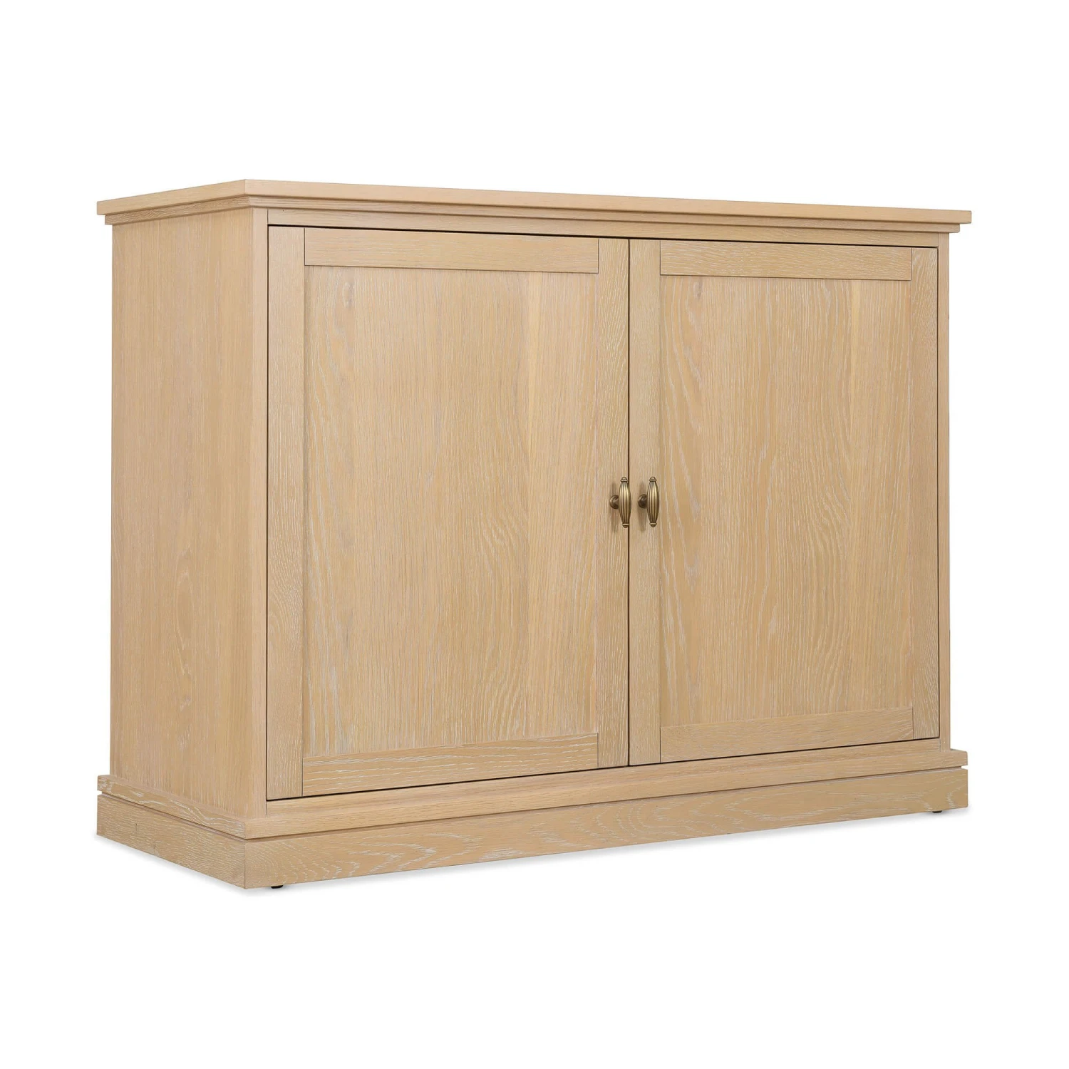 A truly enchanting piece designed to elevate the aesthetic of any farmhouse-style kitchen or dining room. This striking sideboard is meticulously crafted from beautiful light oak wood, showcasing a natural grain that adds warmth and character to your interior. Its enduring traditional style is defined by two elegantly inset panelled doors, which open to reveal ample storage space. These doors are adorned with charming antique-style brass capsule pulls, featuring ornate detailing that adds a touch of vintage sophistication and enhances its classic appeal.
