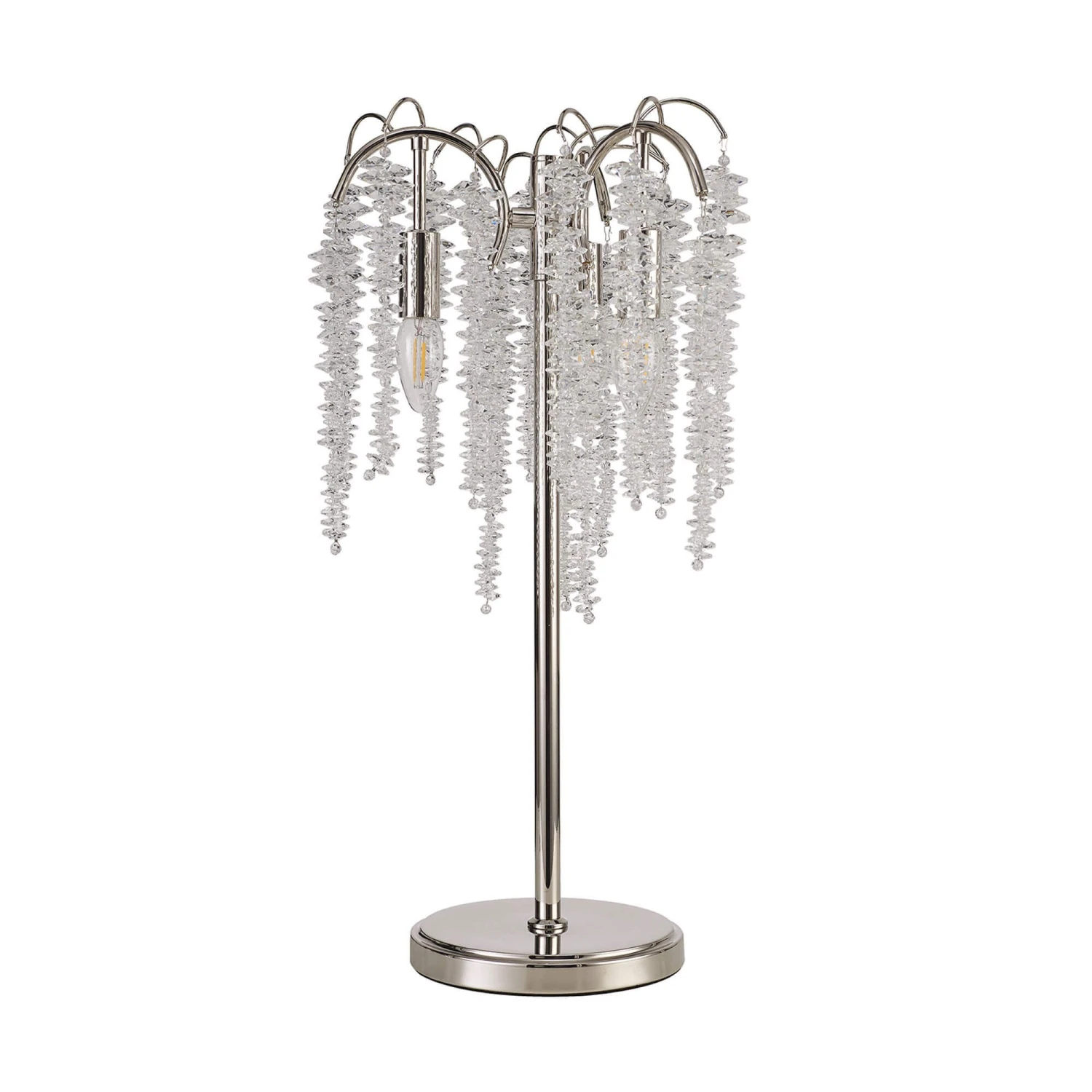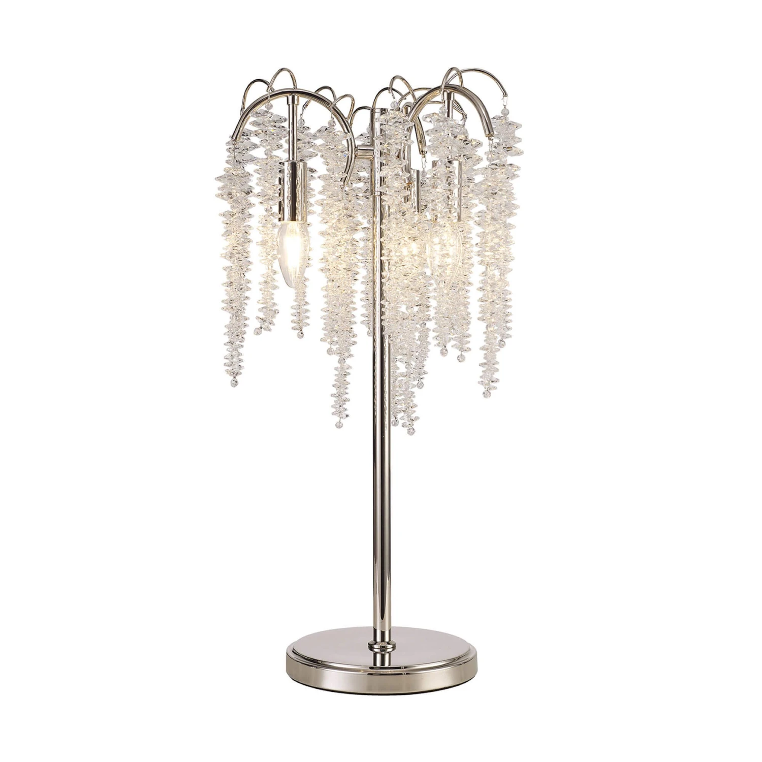 Add a touch of natural beauty and elegance to your home with this Wisteria Polished Nickel & Crystal 3 Light Table Lamp. Illuminable by three E14 LED bulbs, this delicate table lamp features a shade made from multiple bunches of K9 crystal values clustered together and delicately suspended from the curved over hanging arms, finished on a polished nickel iron base, elongating to form an imitation of the popular garden plant to create a stunningly decorative piece. Operated by a inline switch, this glamorous table lamp is perfect for adding a unique and lavish touch that’s able to enhance any room.