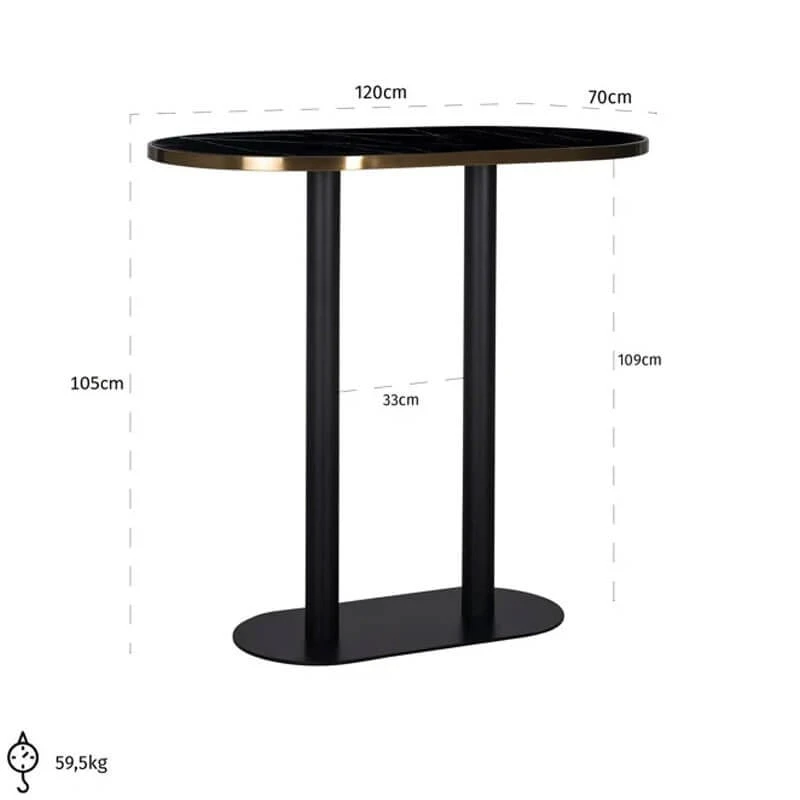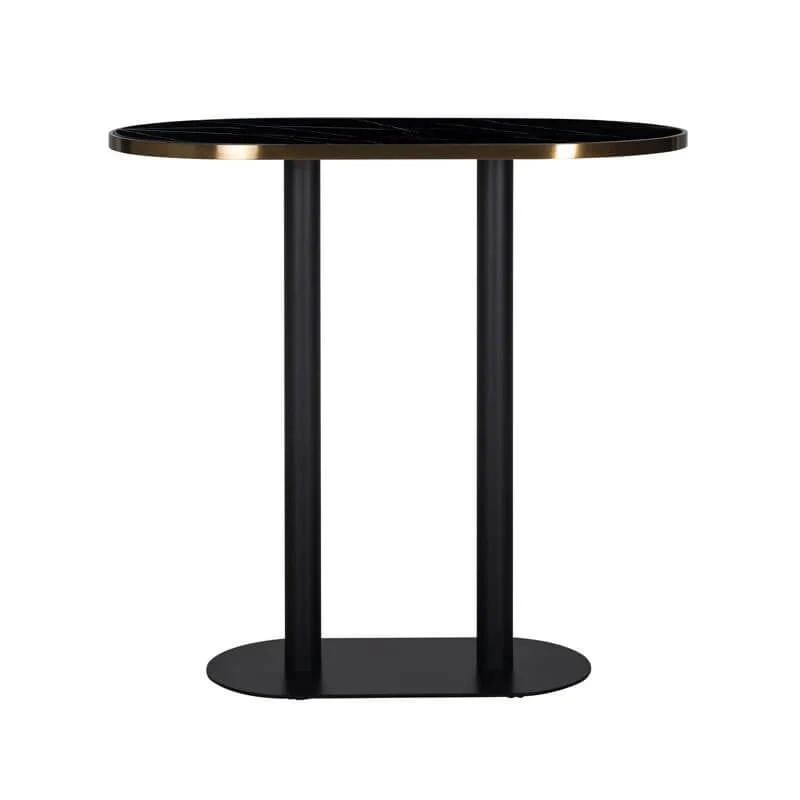The Zanzibar Oval Bar Table is perfect for entertaining friends and family with your favourite beverages. Featuring an elegant black marble effect top with complementing slim black legs, the Zanzibar Bar Table will make a sleek, minimalist addition to your home.