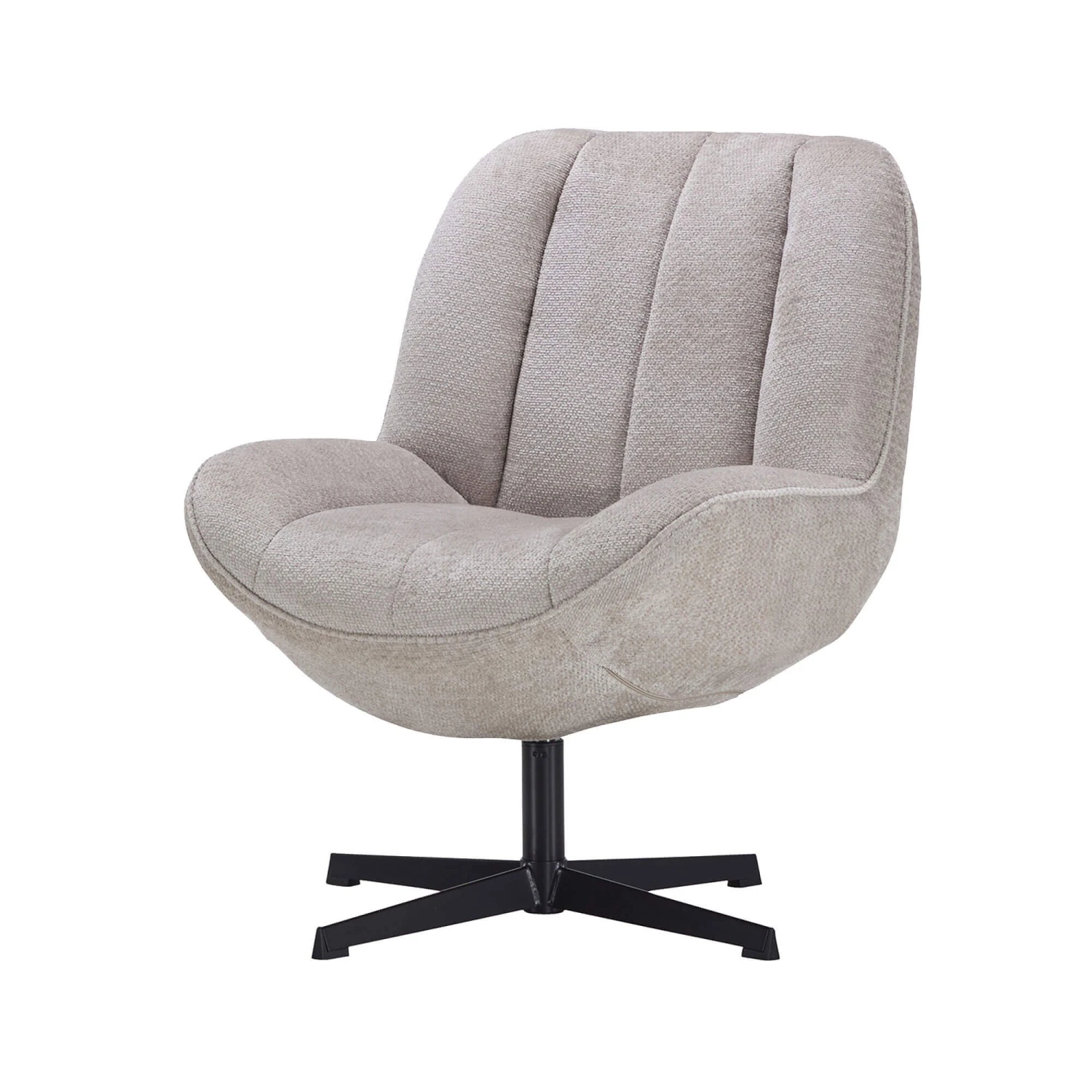 Combine timeless style with everyday comfort with the Zara Natural Fabric Accent Swivel Chair. Upholstered in a textured natural fabric, the Zara features plush cushions and panelled detailing for added comfort and style, a curved silhouette offering ergonomic support and a black metal swivel base providing stability and ease of movement, creating a cosy yet stylish piece.